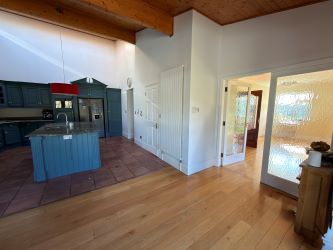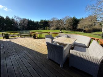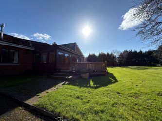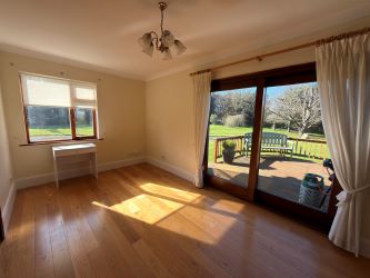 Extending across a single storey, the property provides generously proportioned accommodation. A welcoming entrance hall leads to a living room and separate sitting room, each benefitting from garden views. At the heart of the home lies an impressive open-plan kitchen/dining room. This superbly appointed area includes a large central island and an AGA. Glass double doors open onto a hardwood decked terrace — ideal for al fresco dining and enjoying long summer evenings overlooking the gardens and surrounding landscape. A separate dining room, also featuring glass double doors is accessed from the kitchen. The property comprises five spacious double bedrooms with master ensuite and direct access to the garden. Notably, three of the bedrooms enjoy beautiful estuary views. A large family bathroom serves the remaining accommodation along with a guest WC.